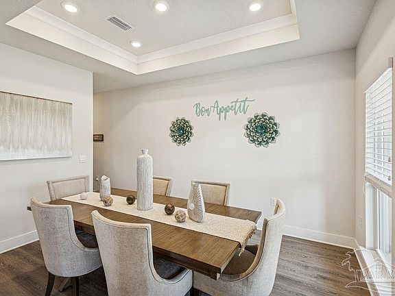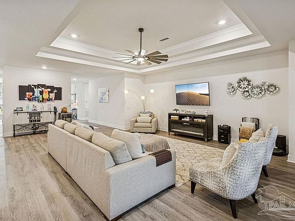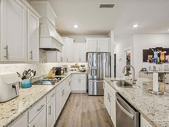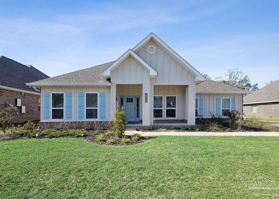 Robinson Estates in Pace, FL — where luxury living meets community living at its finest. Nestled among estate-sized lots, this neighborhood offers tranquil living with its gated pool, inviting sidewalks, and beautifully maintained common areas. Step inside this single-story McKenzie floorplan and feel instantly at home. With over 3,000 sq ft, this spacious layout features 5 bedrooms and 3 full baths, providing generous room for family, guests, or flexible living arrangements. Curb appeal stands out with a Craftsman-style Hardie-board front, paired with a three-side brick exterior and a welcoming front porch. Inside, a grand foyer opens to the expansive open-concept living area designed for both everyday living and entertaining. The island kitchen overlooks the large living room, creating a seamless flow. The kitchen includes: • Abundant cabinetry • Large walk-in pantry • Stainless-steel appliances • Granite countertops • Tile backsplash • LVP flooring throughout main areas & carpet in bedrooms The family room is spacious and inviting, featuring an updated designer fan and generous natural light. The primary suite offers a peaceful retreat separate from guest bedrooms. Additional interior highlights include: • Updated light fixtures in key areas • Blackout shades in all bedrooms • Blinds throughout the remainder of the home • Smart Home package: KwikSet keyless entry, Wyze doorbell, automated porch lighting, Echo Dot, and Qolsys touch panel • Energy-efficient LED lighting Step outside to the 250+ sq ft screened back porch, perfect for unwinding or dining outdoors. The backyard is fully fenced, and the home includes gutters for added protection. Located in the highly sought-after A-rated Santa Rosa County School District, this home is perfectly positioned on a quiet, low-traffic cul-de-sac in one of Pace’s most desirable communities.