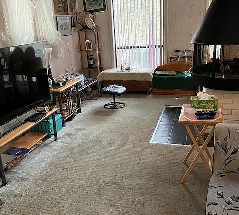 Free standing fireplaceThree good size bedroomsLarge deckEat in kitchen
