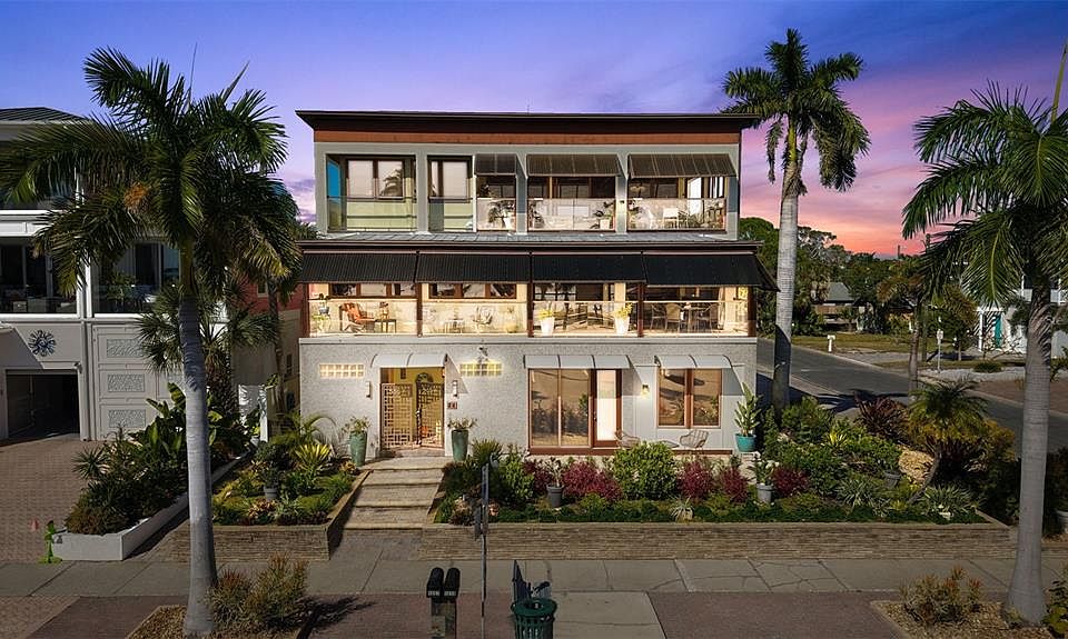 Discover a one-of-a-kind modular home steps from Boca Ciega bay with fabulous views from every level. This stunning home boasts 7 bedrooms, 7.5 bathrooms, and a spacious 5-car garage. Imagine the options afforded by this layout. Perfect for multi generational living, Airbnb,hotel or one large single dwelling. Step into your own private retreat, featuring separate living quarters on each level. With private entrances and upscale finishes throughout, you’ll enjoy flexibility without sacrificing privacy. The top floor is a true sanctuary—your personal haven with 3 bedrooms, a beautifully designed office, and breathtaking views of Boca Ciega Bay. Bask in natural light on rich mahogany floors beneath soaring vaulted ceilings. The gourmet kitchen, equipped with a gas stove and expansive island, leads to a covered veranda where sunsets paint the sky, perfect for entertaining or evenings of relaxation. The second floor is a versatile space, currently optimized as a 2-bedroom suite and 1-bedroom executive apartment—ideal for guests or rental income. On the ground floor, a charming studio suite offers an additional escape, complemented by a well-equipped workshop and beautiful landscaping nourished by a well-water irrigation system. Every inch of this estate reflects unparalleled craftsmanship with features like hurricane-impact windows, individual climate control for each space, tankless water heaters, and a whole-house water filtration system. Designed to embrace the luxury of coastal living while providing peace of mind with CAT 5 storm resilience. This home truly stimulates everyone’s imagination. Embrace the ultimate Florida lifestyle—this exceptional property awaits your personal touch!