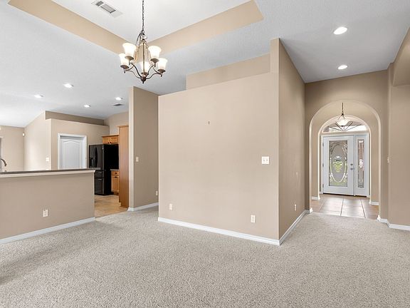 Enter through the elegant double archways leading to the great room with vaulted ceiling, corner fireplace, and views of the private backyard. The large, open kitchen is the heart of this home, featuring Corian countertops, a center island, breakfast bar, walk-in pantry, and stainless steel appliances including a refrigerator, flat top range/oven, built-in microwave, and dishwasher.