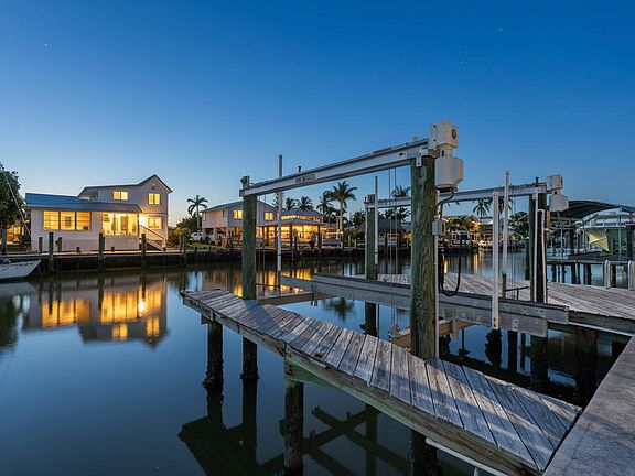 Boaters paradise! This home in Goodland offers a waterfront lifestyle with solid construction and practical coastal features. Built in 2018 and elevated above grade, the home combines 10' ceilings, a vaulted main living area, and a spacious open layout that makes it easy to relax or entertain. Hurricane-rated windows, shutters, and a 50-year metal roof provide security and peace of mind. Step outside to the canal-front yard, where a 12' x 18' deck, and 10,000-lb boat lift make boating and fishing effortless. Water and power at the dock simplify cleanup, and the fenced backyard creates a quiet space for outdoor gatherings or casual evenings watching the water. Whether launching a boat, kayaking, or enjoying the sun on the deck, this property is built for coastal living. Inside, the kitchen features Sub-Zero and Wolf appliances, a convection microwave, and warming drawer, supporting both everyday meals and casual entertaining. The lower level includes a flexible 2.5-car climate controlled garage with workshop space offering options for hobbies, projects, or visitors. Additional conveniences include a sprinkler system, kayak rack, and generator hookups. Goodland is a small, historic fishing village that offers a relaxed, Old Florida lifestyle with easy access to some of the region's best boating and fishing. The community features two county parks, two marinas, local restaurants and street-legal golf carts allowed throughout town. Residents enjoy direct access to the Ten Thousand Islands and the Gulf, making kayaking, fishing, and boating a daily possibility. Just a short drive away are the beaches and shopping of Marco Island, providing a balance of quiet coastal living with convenient access to nearby amenities. Whether you're launching a boat for a day on the water, enjoying a meal at a waterfront restaurant, or simply taking in the peaceful surroundings, this home puts the best of Goodland within easy reach.