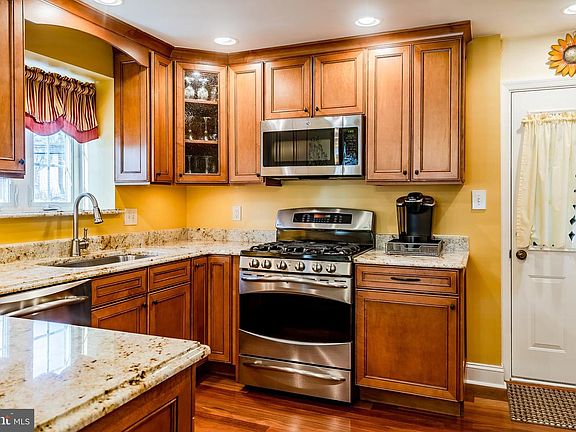 You have probably been waiting for the right property to come on the market and we know good things come to those who wait, by the way, we think this is a 10. From the fabulous curb appeal to the wonderful condition of this home you will not be disappointed. So much has been upgraded and beautifully maintained throughout with all the major components updated. Offering 3 bedrooms, 2 full updated bathrooms, an amazing newer kitchen and a finished basement with a gas fireplace. Start on the covered front porch with this huge space to be able to set up your outdoor furniture and seasonal use to have a daily watch of what is happening in this great neighborhood. The full Masonry Exterior brick with no wood framework has been totally maintained, kept up on the pointing and looks great. The roof was replaced in 2019 and do not forget to check out the rear entertaining space with the 20 x 20 stamped concrete patio. The formal living room is very large and has lots of windows to let in tons of bright sunshine, adjacent to the awesome dining room. Hardwood floors under living room carpets. Then you will love it, another full remodeled bath with extra height vanity and granite sink with lots of drawers, a walk in shower, 12 x 12 tiled flooring and just outside this a huge coat closet area. The ultra modern kitchen has solid 42 inch maple cabinets with crown molding, soft close drawers, large pantry with slide out drawers, glass decorative front corner cabinet, under cabinet lighting and stunning Granite double beveled edge counter tops. Top of the line GE Profile series stainless steel refrigerator with water dispenser and ice maker, GE stainless dishwasher and a 5 burner Gas Stove. Not finished yet, take a look outside from a deep window box and sill with granite top just over the deep double sized stainless steel drop in undermount sink with disposal. Top it off with lots of drawers for storage, decorative door knobs and matching handles along with stunning hardwood flooring and do not forget there are 7 recessed lights. The 2nd floor has 3 good sized bedrooms with hardwood floors under the carpets, a remodeled full hall bath, ceramic tiled flooring and nice shower over tub. Hall linen closet, large main bedroom with double closets and there is attic access for storage in the 2nd bedroom. On the first floor off the kitchen, there is an outside exit here to the rear storage 10 x 12 sized garage to keep the snow blower, garden tools, lawn mower in the spring or you decide on this one as there is also at the rear of the yard a 10 x 12 shed for you as well. Also, an entrance from the kitchen to the 22 x 12 bonus finished basement with a corner gas fireplace with a decorative wooden mantle with dental molding. This is great space for overflow entertaining or a home office in todays world. 200 AMP electric service and yes there is plenty of storage for you with full hanging closets and built in shelving on the other side of the basement. There is also the laundry area with a full size laundry tub, lots of great space here. Gas heater and central air installed in 2019, along with a new hot water heater in 2015, replacement windows less than 10 years old, all this makes this one the Bomb. Did we mention the gorgeous rear lot, might just be close to one of the larger lots in Springfield Township, want a pool or a great field to have tons of room for entertaining, this is it, level and large. To top it all off, the lucky Buyer on this home with have a one year American Home Shield Warranty from the day of closing supplied by the Seller so you will have complete piece of mind, no worries.