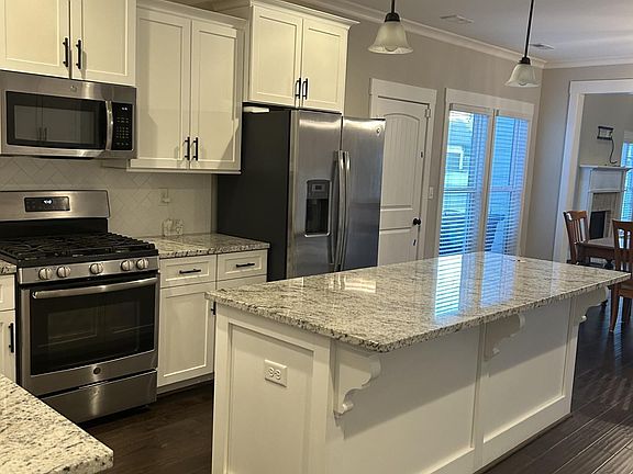 This well-maintained 3/2 bath home is full of upgrades and sits on a cul-de-sac lot with no neighbors to the left, offering extra privacy. It’s within walking distance to Chelsea Park Elem., community pool, & both lakes, making it an ideal location. A spacious front patio welcomes you inside to an open floor plan w/vaulted ceilings & abundant natural light. The family room features a brick fireplace with gas logs & a gas starter, creating a cozy centerpiece. The kitchen has been beautifully upgraded with extra cabinets, stainless steel appliances including a gas range, and a large island perfect for entertaining or gathering with family. Just off the kitchen, a mudroom with cubbies leads into a generous laundry room. The master suite is located off the family room and includes trey ceilings, a tiled shower, garden tub, private water closet, double vanities, and a large walk-in closet. Two additional bedrooms share a full bath in between, offering plenty of space for family or guests.