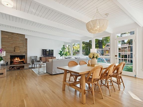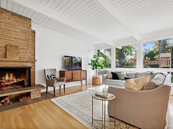 California cool in East Winnetka! Absolutely flooded with natural light from the floor to ceiling windows overlooking the expansive backyard, the outdoors seem to come inside. Upon entering, the airy interior featuring 13-foot vaulted, wood-plank ceilings lends volume to the generous living space. The kitchen of your dreams is outfitted with a massive rift-sawn, white oak island, custom maple inset cabinets, honed quartz countertops, pewter hardware, and top of the line appliances. An open floor plan including a dining area and living room with a field-stone, wood-burning fireplace creates a breezy flow to the multiple levels of the home. Newly installed white oak hardwood floors throughout the 1st and 2nd floors compliment the fresh decor that reminds you the beach is only a few blocks away. The spacious primary suite has a vaulted ceiling, a wall of closets, and an ensuite bath. Two family bedrooms with large, outfitted closets share a hall bath and complete the 2nd floor. The lower level features a large and comfortable rec room, an exercise room, laundry, and storage. Curated landscaping includes limelight hydrangeas, manicured boxwoods, climbing garden roses, star of jasmine, and over 300 tulips ready to bloom. A rear storage shed and concrete patio round out a fabulous backyard filled with sunshine. Located on one of the most fun blocks which hosts 1st Fridays and an annual 4th of July block party, this home is only a few blocks from Greeley and NTHS, Indian Hill, and the beach. Truly a breath of fresh air!