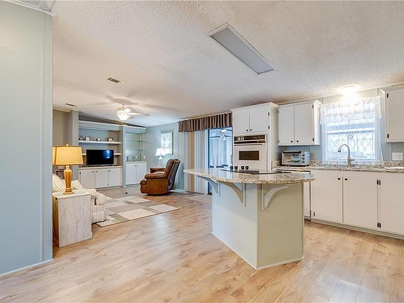 Granite countertopsFamily roomRear screened lanaiDecorative built-in storageAir-conditioned glassed florida roomDining roomUpdated kitchen