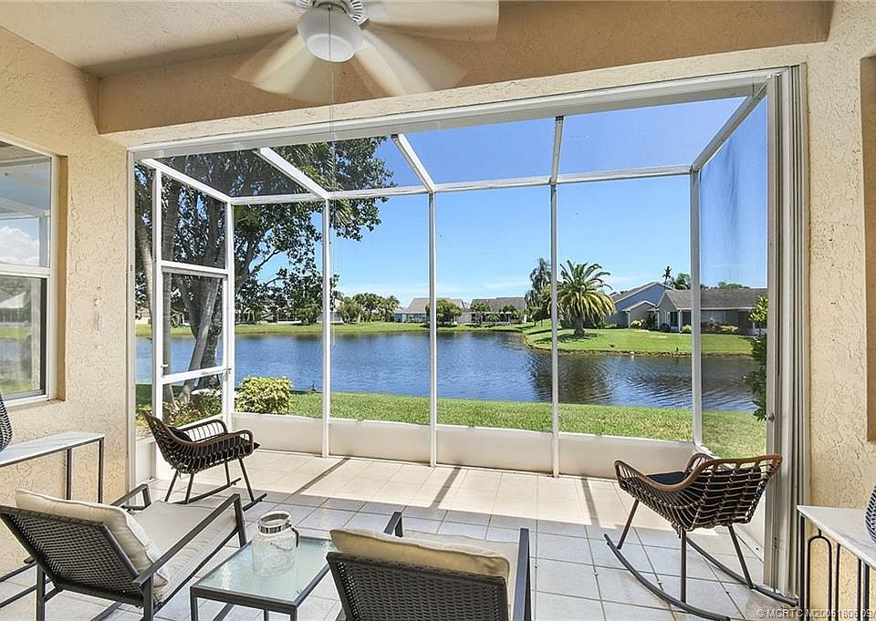 Step into serene lakefront luxury living in the heart of St. Lucie West. This stunning residence greets you with breathtaking water views the moment you arrive, Landscaped front yard features twin palms. Enter through a vaulted screened patio & elegant double-door entry into a soaring foyer highlighted by a custom chandelier. You'll be captivated by uninterrupted lake views that stretch through the home to your private backyard oasis. Enjoy Florida living at its finest Plantation shutters offer timeless style, shaded lakeside screened patio invites you to relax & unwind in comfort. Wake to lake views in your master suite, with additional water views from the kitchen & second bedroom truly making this a home designed around its natural surroundings. The Royal Club features pool, clubhouse, lighted tennis & pickleball courts. Just minutes from all the best shopping, dining, golf & recreation St. Lucie West has to offer. Don’t miss the opportunity to own this slice of lakefront paradise.