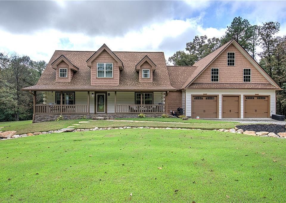 Welcome to your dream retreat! This beautifully renovated log home with covered front porch, completed in 2024, sits behind a gated entry on 19.28 secluded acres featuring a 20-foot deep, spring-fed, stocked pond, freshly sodded with lush zoysia grass — the ultimate private escape for nature lovers, outdoor enthusiasts, or anyone seeking peace and privacy. Step inside to an awe-inspiring two-story great room with soaring ceilings and a floor-to-ceiling stacked stone fireplace. Brand new Asian Walnut hardwood flooring, designer lighting, and top-of-the-line finishes flow throughout the home. The open-concept kitchen is a showstopper, with quartz countertops and a waterfall island, stainless steel appliances, soft-close cabinetry, a coffee station, a dining area, and a spacious butler’s pantry. The main level offers two generously sized bedrooms, a full bath, a large mudroom, and a huge laundry room. Upstairs, you'll find a third bedroom, a spacious loft that overlooks the great room, and a brand-new upper-level HVAC system. There's also approximately 850 square feet of unfinished space — ready to be transformed into additional bedrooms, a home office, gym, or studio. The exterior has been completely refreshed, with new paint, stacked stone accents along the foundation, and a large back deck overlooking a private backyard — perfect for entertaining or relaxing. Additional features include: 2.5-car garage on the kitchen level for easy access and storage, Multiple outbuildings, including an 18x35 pole barn with RV cover and another pole barn 1x20, fenced-in area ideal for pets or horses. This rare property combines luxury, comfort, and functionality in a stunning natural setting!