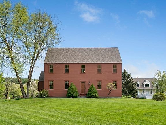 Sited on 1.5 acres of park-like grounds w/ abutting conservation & pastoral views, the postcard worthy setting of this Creighton Hamill designed reproduction colonial echos a vintage New England landscape. Wide pine floors, beamed ceilings & wood-crafted cabinets envelope the warm & relaxed essence of this special home. An easy flowing floor plan anchored by an oversized fireplace'd family room open to an eat-it-kitchen flows nicely into formal living & dining rooms, plus a handsome office with a wall of cherry built-ins. Four corner bedrooms & two full baths - including a large primary en-suite w/ a cozy brick fireplace - and an unfinished walk-up attic w/ potential expansion possibilities completes the upper floors. A glorious screened porch overlooking the gardens is the perfect spot to take in gentle breezes. Full unfinished basement offers ample storage. Convenient highway access, miles of hiking, biking & walking trails, adjacent to an established neighborhood. Exceptional!