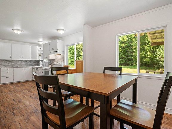 Riverfront home on 3.2 acres of pure mother nature located on the gorgeous Moyie River. Darling Cozy Home and Guest House are nestled between Copper Mountain & Hogue Mountain and feature 251 feet of River frontage. A charming setting that hosts the main home, guest house, shop, 20kw Kohler generator with automatic transfer switch, Ozone and Iron filter, whole house water system, fully insulated crawl space, asphalt driveway, RV pole barn, and green house. Cambria quartz countertops add beauty to this adorable home. Emtek crystal hardware gives you that special touch. You'll love the spectacular views of the Moyie River...wake up each morning on the outside deck and watch our local Bald Eagle fly up & down the River each day, all while you sit with a warm cup of Joe. Awe-Inspiring sunrise and sunsets on the majestic mountains in both directions. This secluded 5 star North Idaho setting has it all.