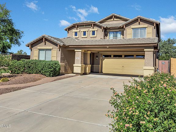Enjoy a private saltwater pool (refinished in 11/25 with new pebbletec and tile) and no rear or side neighbors. Your corner lot retreat backs to a lush greenbelt for added privacy and views. Inside, you'll find a bright, open layout with a full bedroom and bathroom downstairs, perfect for guests or multi-gen living. Upstairs, the primary suite features a private balcony overlooking the greenbelt, while a second bedroom also has its own balcony, ideal for morning coffee or Arizona sunsets over the San Tan Mountains. Additional highlights include a whole-home water filtration system, a partial roof update in 2024, under stair storage with cedar lining, multiple living spaces, and pride of ownership throughout.