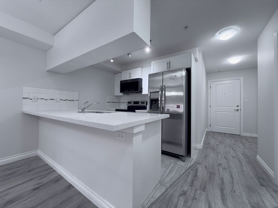 The open kitchen features granite countertops, stainless steel appliances, and a sit-up breakfast bar ideal for hosting or quick everyday meals. The primary bedroom includes a built-in air conditioning unit and convenient walk-through closets that lead directly to the ensuite. Large windows bring in abundant natural light, creating a bright, welcoming atmosphere. Step out onto your private terrace to enjoy fresh air and sunshine.