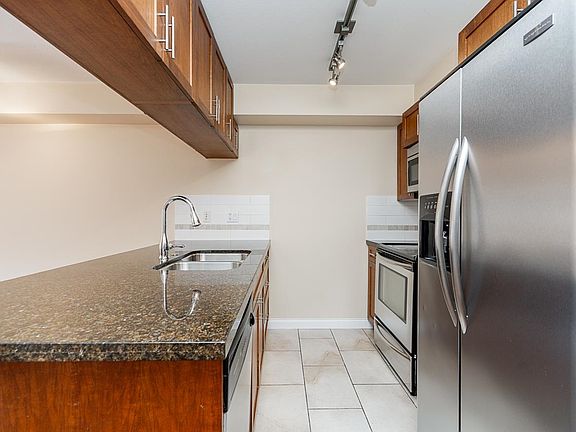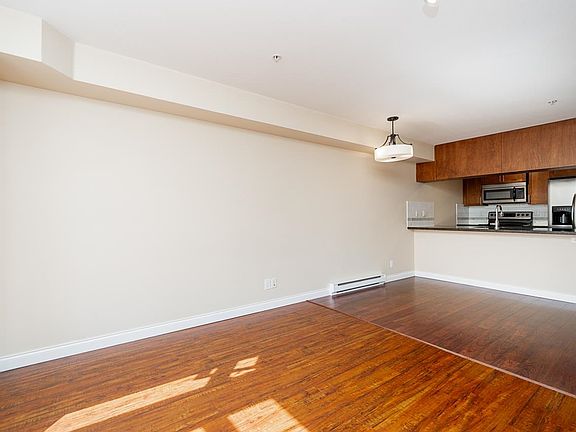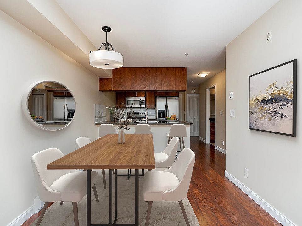 Shaker cabinetsStainless steel appliancesOpen-concept livingRich laminate floorsVersatile second bedroomTons of natural lightLarge sundeck