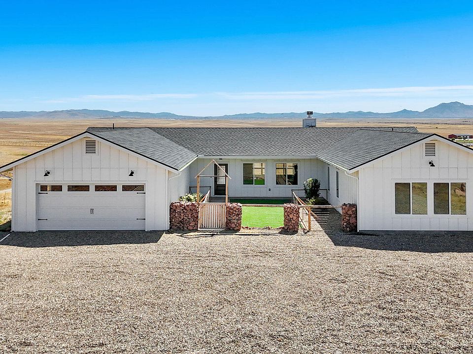 Your chance to own a like new 7-acre home in desirable Haystack Ranch east of Chino Valley. Enjoy stunning panoramic views, sunsets & sunrises from your large deck. High efficiency home, low E windows, double attic insulation. Custom Granite kitchen, bathrooms, laundry room w/ soft close. High end stainless appliances w/ upgraded features. Wood burning fireplace w/ blower. 16 seer 2 stage heat pump w/ AC. Great well. 3 stage whole house water filtration system w/ softener. Large soaker tub in primary. Extra deep 27 ft 2 car garage. Chicken coop w/ runs. 9 fruit trees, berries, grapes & raised vegetable beds all on drip. Perimeter & cross fenced solar electric with cattle gates. Ride directly from your Ranch to State Land then onto the Prescott National Forest
