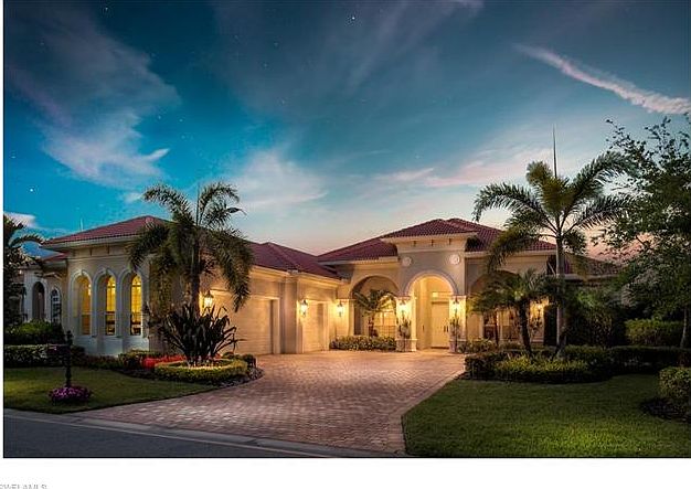 Beautiful 4 plus den, 3 1/2 bath, 3 car garage estate pool home on a premium lot with magnificent lake views in award winning Vineyards Community. This is the Cambridge Model. Beautiful exterior facade with stone trim. Barrel tiled roof and a side entry three car garage with a large paved driveway. Interior boasts ten foot sliders that pocket away in both living and great rooms. 14' ceilings some of which are coffered. Lanai gets sun all day long and is screened in with an extended area for e...