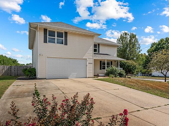 Welcome to this stunning custom-built 3-story home on a corner lot in south Springfield. The home boasts great curb appeal with its well-maintained landscaping, spacious 2-car garage, and inviting front porch. Step inside to a spacious living area that flows into the dining space, seamlessly connecting to the large kitchen featuring wood cabinets, a center island with bar seating, and plenty of natural light from the French doors leading to the back deck. The main floor includes a guest bedroom and a full bathroom for convenience.On the second floor, you'll find the master bedroom with vaulted ceilings, a large walk-in closet, and an expansive master bath with a double vanity, soaking tub, walk-in shower, and a vanity area with space for a stool. A versatile room, perfect for a home office, offers access to a private back deck, along with two additional bedrooms, each with their own full bathroom. The third floor features a spacious loft, ideal for an additional living area or playroom. Outside, relax in the fenced backyard or enjoy the peaceful surroundings from either of the home's two back decks. This move-in-ready home offers the perfect blend of custom charm and modern convenience!