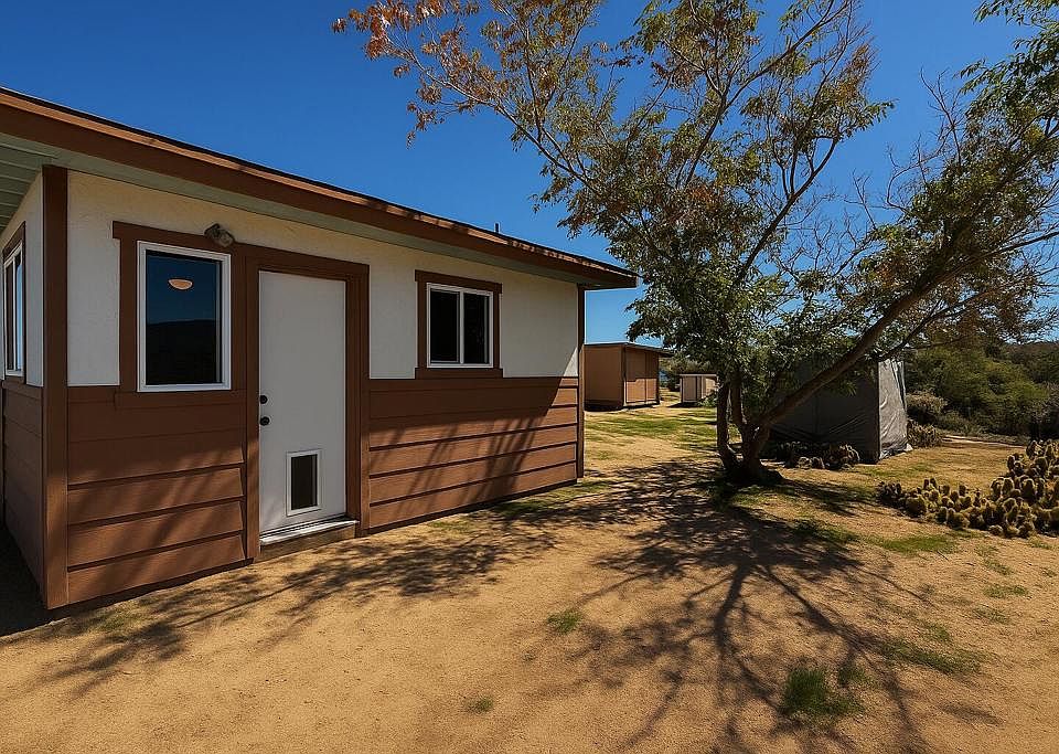 Call all investors! Looking for a Great Investment Opportunity, well this is it! Charming 352 sq. ft. single-family residence set on 2.10 acres of beautiful desert landscape. This fully perimeter-fenced property offers stunning mountain views, plenty of flat, usable land, and is dotted with fruit and shade trees for a peaceful setting. The home needs some work but has great potential, featuring a small kitchen, laundry area, bathroom, and a surprising amount of usable space for its size. A detached two-car garage with underground storage, plus three additional outbuildings, provide ample room for tools, equipment, or creative use. With a little vision, this property can truly shine!Buyer to verify all permits, square footage, and property use to their satisfaction. Broker and agent make no guarantees.