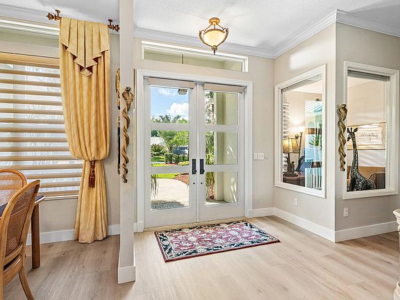 MUST SEE! Nestled in the highly sought-after neighborhood of Pennock Pointe Estates, this immaculate redesigned four-bedroom, three-bath CBS pool home beautifully captures the feeling of easy South Florida living. Perfectly situated on a generous half-acre lot in the heart of Jupiter, the residence is surrounded by lush, meticulously landscaped gardens and a fully fenced yard, creating a private oasis for relaxation and effortless entertaining. Enjoy peace of mind with complete impact windows and doors (2021) and a metal roof with upgraded 7'' gutters (2022) all integrated with solid concrete wall construction. Step inside to an open floor plan filled with natural light, designed for both comfort and entertaining. The spacious living areas feature new luxury water-resistant flooring from the Spectrum Nantucket Collection and updated custom baseboards, blending timeless design with everyday durability. Custom Smart Motorized Hunter Douglas window treatments throughout provide seamless control of light and privacy at the touch of a button. Three of the four sliding doors are stackable and open completely, connecting indoor living spaces with your private outdoor oasis and creating a seamless flow for entertaining. The well appointed kitchen boasts top-of-the-line stainless steel Bosch appliances, durable Corian countertops with solid surface backsplash, and thoughtful design that makes meal prep a breeze. The primary suite is a true retreat, with sliding doors that open directly to the backyard oasis. The spa-inspired ensuite bath offers dual vanities, a soaking tub, a separate shower, and dual walk-in closets. Each guest bedroom is generously sized, with one offering an en-suite cabana bath. The fourth bedroom is a versatile flex space, perfect for a home office, den, or playroom. The expansive covered patio is ideal for hosting gatherings, complete with a built-in gas grill and new tongue-and-groove cypress ceiling. Unwind by the custom heated saltwater pool & spa with a tranquil waterfall feature overlooking the private green space. Additional features include professionally landscaped gardens, including a Silk Floss tree with stunning pink blooms and a mature Hayden mango tree, landscape lighting, oversized two car garage with side entry and long driveway, wood burning fireplace, newer A/C and water heater, fresh paint inside and out, desirable southern exposure, and more! Zoned for Top-Rated Jupiter schools! Conveniently located just minutes to beautiful Jupiter beaches, Riverbend Park, vibrant shopping, and renowned restaurants. Minutes to I-95 & the Turnpike. This property is one of a kind in the beautiful seaside town of Jupiter with over three miles of beautiful beaches along its coastline! Move right in and start enjoying the Jupiter lifestyle. Call for your private tour today!