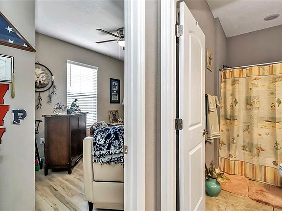 Ocala Preserve an exclusive gated community in rated #2 Forbes rated Ocala Fl for 2025 WITH INCREDIBLE AMENITIES! This is the connect floor plan built by Shea homes. 2019 architectural shingle roof. 2019 A/C and hot water heater. The home is right under 1,900 square foot open concept layout with a 3 bedroom 2 bath home PLUS Den/Office. The 2 car garage includes overhead storage staying with the home. Located in the gated community. This home is walking or driving your golf cart distance to the clubhouse and amenities! As you walk through the beautiful glass inserted front door, you will see this home has upgrades! Crown molding throughout, tray ceilings, and tall baseboards all add to the fit and finish of the home. Upgraded high end tile flooring with vinyl plank flooring and carpet only in the bedrooms. This is a split floor plan which allows privacy for the master bedroom. Located between the 2nd and 3rd bedrooms you will find the guest bathroom with a shower/tub combo and a stunning vanity with granite tops. The kitchen is loaded with upgraded options. The cook in the home will love the granite countertops spacious area with an abundance of cabinet space. Amazing oversized floating kitchen island with canned lighting and it can sit multiple bar stools. Just off of the kitchen you'll find a laundry room, which has extra storage space and a pre plumbed for a utility sink. The master bedroom is located off of the living room. Enjoy more natural light with (3) large windows and tray ceilings. The spa-like bathroom has multiple cabinets and drawers, dual sinks, granite counters, a huge walk-in closet, and a beautiful walk-in shower. Ocala Preserve offers unique outdoor experiences including a 7-acre lake, three themed park winding throughout the 600+ acre community, and an expansive network of walking, biking, and hiking trails, Just Minutes from the World Equestrian Center, HITS, minutes from the historic downtown Ocala, and major highways, shopping and entertainment.
