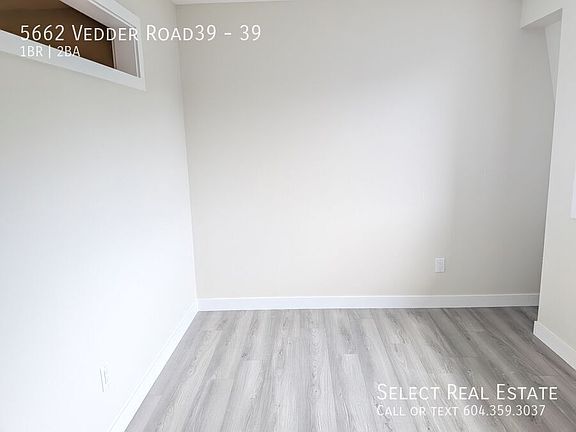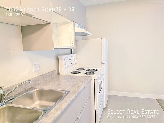 Address: 39 - 5662 Vedder Road Date Available: June 24 2025 Description: Charming 1-Bedroom + Den, 1.5-Bathroom Loft-Style Townhome in the Heart of Sardis, BC This stylish and spacious loft-style townhome features a unique open-concept layout with a generous living area, a modern kitchen, and two bathrooms. The upper-level loft bedroom offers plenty of natural light, while the main floor includes a cozy living room and a full bathroom. Ideally located in the sought-after Sardis neighborhood, enjoy easy access to local amenities, parks, and shopping. Perfect for those seeking a blend of comfort, convenience, and modern living. Lease Details Lease duration: 1 Year Deposit: Months Rent. Pet Deposit: N/A. No Smoking Property Details Bed: 1 + Den Bath: 2 SQFT: 560 Pet Details Pets(Yes/No): No Type Allowed: N/A Number: 0 Size Restriction: None Exterior Details BBQs allowed(yes/no): Yes Parking type and how many: Street/Off Street Yard Usage: Private Yard fully fenced: No Shed Or Shop Usage: No Appliances Included Fridge: Yes Range: Yes Dishwasher: No Microwave: No Washer/Dryer: Yes Shared Laundry: Yes Pay Laundry: Yes Fireplace: No Air conditioner: No Standalone freezer: No Utilities Gas: NA Hydro: 100% Tenant Internet/Cable: 100% Tenant Water, Sewer, Garbage: Included Utility Type Heat Source: Electric Baseboard Septic/Sewer: Sewer Water Source: City This beautiful town home is located in Vedder Crossing right across the road from Garrison Crossing. Close to transit, shopping, recreation and much more! This fully renovated home features a living and kitchen area on the main floor with a half bathroom. Upstairs you will find a bedroom area and full bathroom. Outside you have a lovely enclosed patio area to make your own private sanctuary.