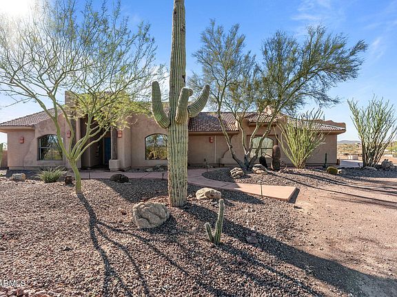 The equestrian facilities at 56624 N 337th Ave are truly exceptional. A full-size roping arena, equipped with a sophisticated sprinkler system, provides a professional-grade space for training, practice. Complementing the arena are 8 generously sized 24x40 corrals, paired with expansive 40x300 turnout areas, ensuring the utmost care and spacious accommodations for your equine companions. Whether you're a seasoned rodeo competitor, a dedicated horse trainer, or simply a passionate horse owner, these premium facilities cater to your needs and aspirations. Beyond the impressive equestrian amenities, the property's 14 acres of picturesque landscape offer a private oasis with an "amazing backyard" - a perfect setting for outdoor gatherings, relaxation, and recreation. A built-in BBQ area invites alfresco dining and socializing, while the vast, open spaces provide endless possibilities for personalizing your dream estate. Envision crafting your private riding trails, constructing additional barns or outbuildings, or simply enjoying the tranquility of the Arizona desert landscape - the canvas is yours to create.