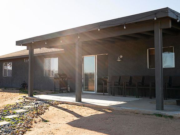 Wonderful Custom Home on 5 Usable Acres with Mountain Views, PAID Solar & Fully FurnishedWelcome to this beautifully maintained 3-bedroom, 2-bath custom home, built in 2006 by Stuart Kirk. Situated on a desirable 5-acre corner lot, this flat and fully usable property offers sweeping mountain views and exceptional potential for equestrian use. With ample space to add a barn, arena, round pen, and paddocks, it's ideal for horse owners or anyone seeking wide-open land with endless possibilities.Inside, the home features a bright, open floor plan with abundant natural light throughout. The primary suite includes a spacious walk-in closet with built-ins and an en-suite bathroom with dual sinks and a step-in shower. The additional bedrooms are generously sized and highlighted by charming box windows.This property is being sold fully furnished, making it truly turnkey for personal enjoyment or an excellent short-term rental opportunity. Outdoor living shines here with a fire pit, cowboy pool, hammocks, and a hot tub--perfect for relaxing under the stars and embracing the peaceful desert landscape.Additional features include a finished and insulated 2-car garage, a circular driveway, and a fenced backyard for privacy and convenience. Located in a quiet and serene area, this home reflects true pride of ownership and is move-in ready.Buyer to verify all information, permits, square footage, lot size, zoning, intended use, and any short-term rental regulations to their own satisfaction. All information is deemed reliable but not guaranteed. Buyer to conduct their own due diligence with appropriate professionals, and to hold agent and broker harmless from any discrepancies or claims arising from reliance on the information provided.