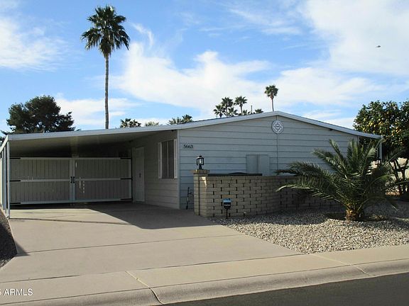 Location, Location , Location!! This is what you have been waiting for. South facing manufactured home w/views to the 8th hole &9th tee box of the scenic Apache Wells golf course. Amazing sunsets & views of common area filled w/palms & tall cactus nestled among the grassy course are your backyard. A sunny covered back patio is perfect for quiet morning coffee enjoying the sunrise, an afternoon reading in the sun &evenings filled w/starlit BBQ's & parties w/friends & family. Inside the light-filled home, an immaculate updated modern interior, w/multiple sitting areas. Kitchen w/updated appliances & walk in pantry also has conveniently located interior laundry. Updated guest bath. 2 spacious bedrooms & ensuite bath complete the layout. Gated carport and golf cart garage. Click ''more A beautiful Pineapple Palm graces your front yard. Fruit trees and a drip system to the back yard for low care and maintenance. An upgraded Simply Safe security system also notifies owner in case of water leaks! (Buyer to create own account if monitoring desired.) Apache Wells is an amazing community. Twice weekly garbage collection and a wide variety of amenities are furnished by the HOA. Lighted pickleball courts, fitness center, heated pool and spa, billiards, cards, art, quilting, biking and hiking clubs, brand new free standing wood shop, library, church and much much more!! Apache Wells is located in NE Mesa with close proximity to shopping, outdoor hobbies, sports and culture. Transportation is easy via Loop 202, the US 60 and both Mesa Gateway and Sky Harbor Airport are an approximate 30 min drive. Full time or seasonal, you don't want to overlook this amazing value!!
