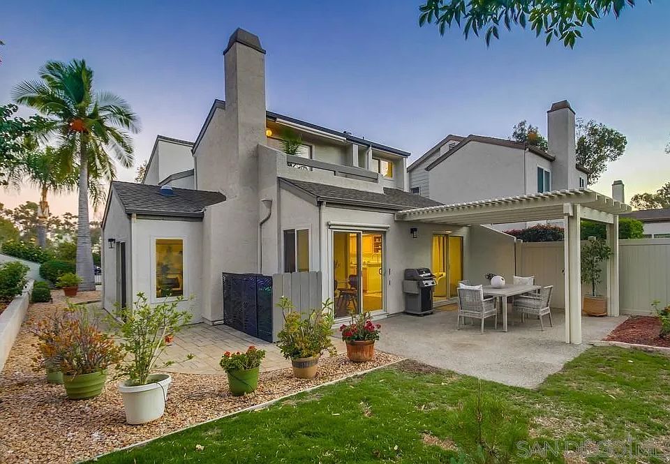 Discover the best of Tierrasanta living in this beautifully remodeled, move-in-ready detached home, nestled on a quiet cul-de-sac in the sought-after Villa Antigua community. This 1,680 sq. ft. house offers dual primary suites, owned solar, and central A/C. The light-filled layout features vaulted ceilings and a cozy fireplace. It also offers easy indoor-outdoor living with access to a spacious 5,360 sq. ft. private yard, complete with mature landscaping and a covered patio—perfect for relaxing or hosting guests. Upstairs, both generous primary suites include en-suite bathrooms and walk-in closets. A versatile bonus area is ideal for a home office, study space, or creative retreat. An oversized 2-car garage provides excellent functionality, featuring epoxy flooring, built-in cabinets, and a full-size laundry area. Homeowners enjoy access to community amenities including a pool, spa, tennis courts, clubhouse, and front yard maintenance. With hiking trails and canyon open space just a short stroll away, outdoor adventures are always within reach. VA approved. Property is move-in ready! Upgrades thoughout include upgraded kitchen, lighting, newer flooring, custom pain, open floorplan and more. Villa Antigua's wonderful community has easy access to the 52 freeway and the I-162