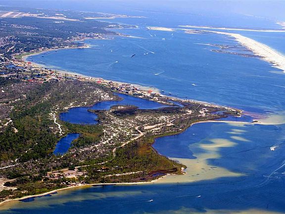 One of the few most desirable Waterfront communities,Grande Lagoon Lakes, offers private neighborhood beach, childrens playground, tennis courts, access to bike trail. 12 Acres of finger lakes for fresh water fishing and Neighborhood Dock for salt water fishing and beautiful homes with views and access to The Gulf. Minutes from Perdido key, famous Johnsons beach, 8 miles of white sand and surf. View from sit of community lakes and the Gulf of Mexico.