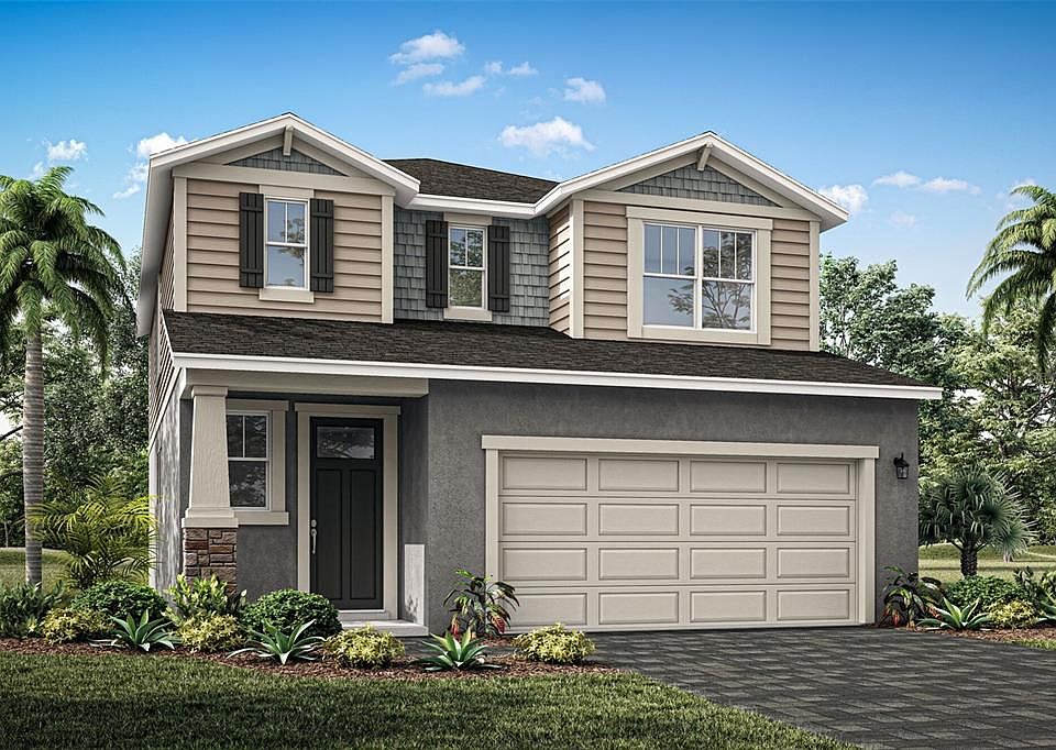 Pre-Construction. To be built. To be built. The Woodruff plan is a two story home with owners suite up with two secondary bedrooms and a loft. Main floor is an open concept plan with flowing kitchen, dining and great room. Covered lanai lends more space to enjoy outdoor living. Kitchen will feature quartz countertops with upgraded 42" upper cabinets, breakfast bar on the island, upgraded appliances and pantry. There is also a flex room on the main floor for an extra space to suit your lifestyle needs. Interior selections have not been made. Taxes are approximate as it is new construction and will be subject to change. Dimensions, information and pricing is subject to change at any time without notice.