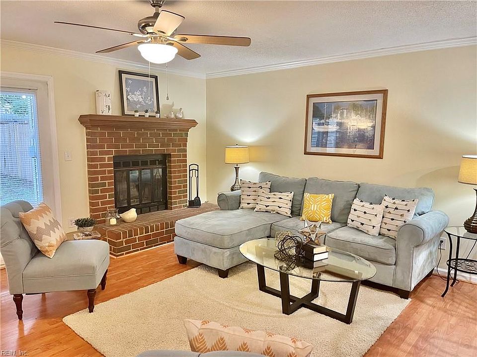 Great opportunity to own versus renting in the heart of Kempsville! Two large bedrooms, both jack-and-jill style with private access to adjoining full bath. Very good closet storage in both bedrooms! Second floor laundry! Big, sunny kitchen with full bay window at informal dining bay + pantry + all appliances. Kitchen sink overlooks seated bar area overlooking great room! Living room is oversized with brick, wood burning fireplace and french door access to rear yard. Half bath downstairs. Deep fenced in back yard. Shows very good and ready for new folks to call it home!
