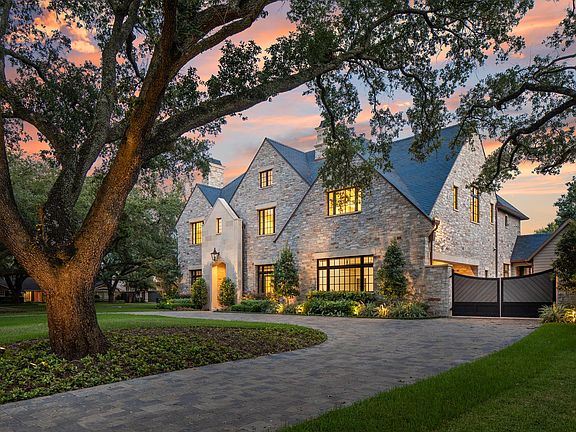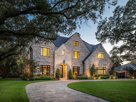 An Award Winner for 2020 Best Design! Gracing a superb Tanglewood corner lot, & designed with the utmost thought & care, this gem features exquisite custom details, abundant natural light, a clean aesthetic & modern lines. This regal masterpiece, with an impressive stone facade & slate roof, pairs luxurious interior comfort with indulgent outdoor amenities. The distinctive architecture offers gracious formals, ideal for entertaining & grand living. Spacious family room adjoins the gourmet kitchen, scullery & wine cellar. The 2nd floor offers a serene Primary Suite & Bath worthy of any five star spa. An elevator leads to four additional en suite bedrooms & an expansive 2nd floor living area. The extraordinary lot features 5 mature live oaks offering an ideal setting for this magnificent home, with a dazzling pool and spa, loggia with fireplace and fully equipped summer kitchen. This classic English Manor is the epitome of refined sophistication. Make it your own & build your memories.