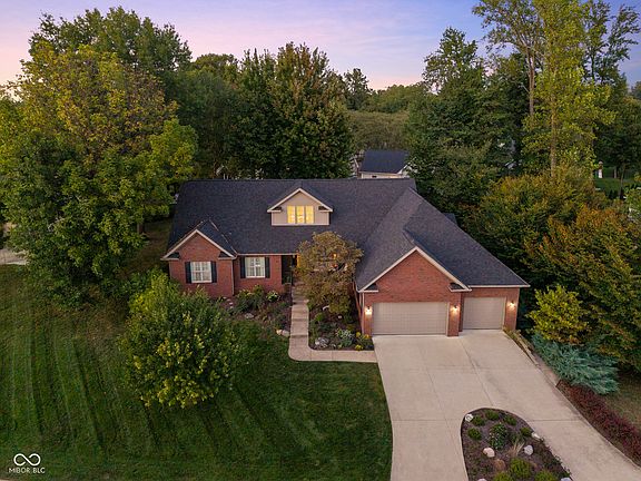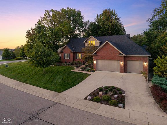 Discover a charming custom brick home in the picturesque Tipton Lakes community, where comfort and style are perfectly combined. The beautiful kitchen is sure to be the heart of the home! It features a farmhouse sink, soapstone countertops, and an island that's perfect for casual dining. You'll love the impressive floor-to-ceiling cabinetry, which provides abundant storage while showcasing fine craftsmanship. A spacious pantry makes organizing a breeze. Decorative crown molding enhances the living space, while a peaceful sunroom filled with natural light creates a serene spot for relaxation. Custom hardwood floors add warmth and character, seamlessly connecting the entire main level. The spacious great room, complete with a fireplace, is ideal for gatherings and cozy evenings. On the main level, you'll find the primary bedroom, offering generous space and comfort along with a walk-in shower. A second bedroom and a convenient office space are also located on this level. The finished lower level includes the third and fourth bedrooms, as well as a versatile fifth bedroom or flex room that can easily adapt to your needs. This home also features a three-car attached garage, providing ample room for vehicles and storage. Thoughtfully designed on two parcels, it preserves the serene wooded views, offering a perfect blend of privacy and natural beauty. Recent upgrades include: 2025: new roof, furnace, gas range, and microwave, 2024: new water heater and kitchen water purifier, 2023: primary bath renovation, 2020: kitchen renovation and custom engineered hardwood floors on the main level, 2017: water softener. As you admire the beautiful views of Treeline Drive, you'll also enjoy all the amazing amenities that Tipton Lakes has to offer!