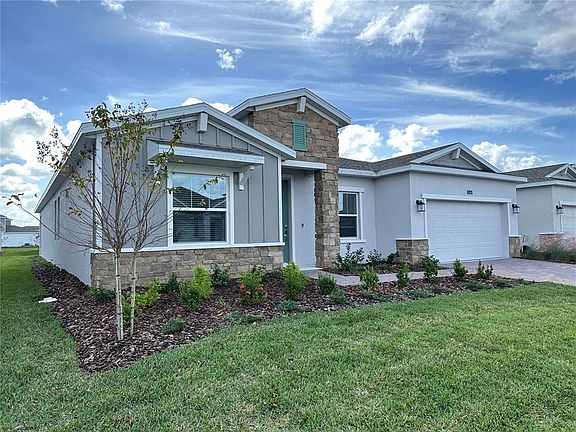 Welcome to this spacious single-story home located in the beautiful new community of Bridgewalk. This thoughtfully designed residence features four bedrooms, three full bathrooms, and a two-car garage, along with two additional flex rooms that can easily adapt to your lifestyle whether as an office, gym, or playroom. The open-concept layout seamlessly connects the kitchen, dining, and family areas, leading to a covered lanai perfect for relaxing and enjoying Florida's outdoor living. The owner's suite offers a luxurious retreat with a spa-inspired bathroom and a large walk-in closet. Residents of Bridgewalk enjoy resort-style amenities including a sparkling pool, modern fitness center, pickleball court, park, and a community dock.