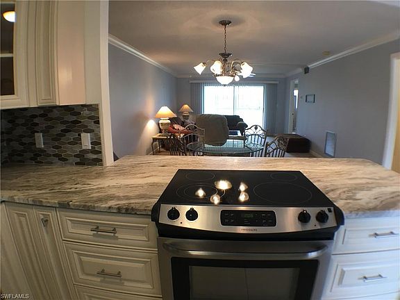 Wonderfully updated Golf View Manor - 2 Bed/2 Bath second floor condo in Naples, FL. The condo features an amazing MUST SEE new custom kitchen with all new custom cabinets, granite counter tops and stainless steel appliances such as a counter depth refrigerator, and smooth surface slide-in range. This condo has a serene view of the Lely golf course over the canal from the screened in lanai. The screened in patio/lanai is equipped with electric a shutter for privacy and protection from storms. The convenient and beautifully kept community pool is just steps away. The condo is perfectly located within minutes from Downtown Naples, Beaches, Tin City, the Naples Pier, and much more. NO PETS ALLOWED