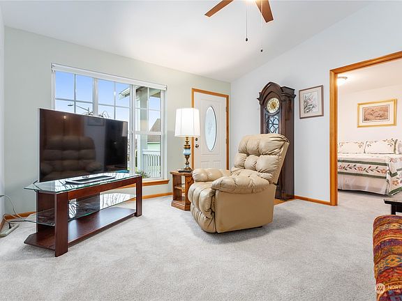 Lovely, single level, 0/Step 2 bedroom condo with attached 2-car garage in the desirable, well-maintained Correll Commons, a 55+ community. The floor plan flows from the great room with spacious living and dining areas and an eat-in kitchen. The primary bedroom, just off the kitchen leads to the spacious walk-in closet, a full bath and the 2nd 3/4 guest bath with step in shower, then on to the 2nd bedroom just off the living area. A large utility room leads to the garage. The in-floor radiant heat is a treat. Ideal location - near all the amenities of Ferndale while offering a quiet, charming oasis. The front porch is a delightful spot to sit, enjoy your garden, the mountain views. Pleasant walkways meander through the area.