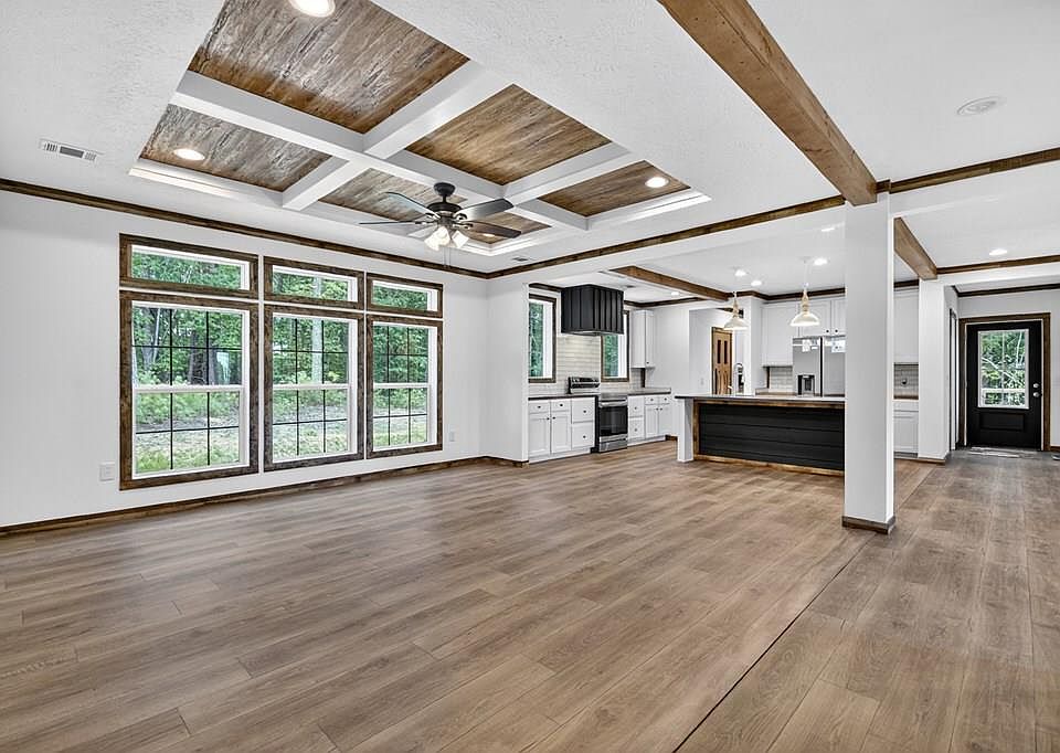 This brand-new modern farmhouse ranch offers the best of style, space, and serenity. Sitting on a generous, level lot surrounded by mature trees and panoramic mountain views, it combines country charm with well-crafted modern details throughout. The crisp white exterior, black awnings, and durable metal roof set the tone for an inviting, low-maintenance design. Inside, enjoy a thoughtfully designed open floor plan featuring luxury vinyl floors, bright white walls with warm wood trim, and a cozy great room with decorative ceiling beams. The kitchen is made for both entertaining and everyday living, complete with custom cabinetry, upgraded stainless steel appliances, apron sink, large island, and bar seating. A butler's pantry and mudroom entry—complete with storage and a seating area—add both functionality and style. The sunroom at the front offers extra space to unwind or host guests, while a dedicated office/hobby room provides flexibility. The spacious primary bedroom offers a spa-inspired ensuite bath with a stand-alone tub, walk-in shower, double vanity, and a custom walk-in closet that might just be more organized than your best intentions.Two roomy guest bedrooms share a full bath with a garden tub and plenty of elbow room. Smart home features add convenience, and the level driveway gives easy access with ample parking. You'll be just minutes from the charm of Blue Ridge and McCaysville, with trails, orchards, rivers, and everyday essentials close at hand... You can expect to save up to 50% on utility costs with this home's energy efficient design. Not to mention - this home's warranty does not expire until May of 2030! An abundance of extras such as custom tile backsplashes, storage building...a must see for full time home, getaway, or investment...