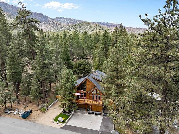 Mountain stunner!! 2400 square feet, 3 beds, 3 1/2 baths, 1400+ square foot garage (best garage in Wrightwood) with soaring ceilings and windows, and modern amenities such as solar (seller to pay off during escrow) A/C, Soft water system, Elite Series water filtration system, expansive wrap around deck, RV access, 220V in garage for the E car, spacious main floor primary bedroom and en-suite, lots of outdoor space, balconies and views galore.... and tons of pride of ownership!!! One of the most sought after properties in the Wrightwood, this exquisite property features rich character, warmth and charm with this stunning log cabin and cedar home which is neatly nestled in the Jeffrey pines of the Eastern San Gabriel mountains. Built for connection, comfort and making memories, this home offers ample outdoor space to enjoy the beauty and tranquility of the Mountains. 15 acres of untouched land to the South and West offer peaceful forest views and endless hiking and nature watching possibilities. Sunsets, snow fall, quiet mornings yet a quick 10 to 15 minute walk to the village and 5 minute walk to the Wrightwood Country Club make this property ideally located but not too far off the beaten path. The main floor features a grand Great room and ample natural light, with nearly 30 foot tall ceilings and windows, wood burning fireplace with air recirculator, an amazing open feel between kitchen, living and dining, and multiple options to get out onto the front deck. Kitchen is open and features granite and stainless steel appliances, large chef's oven, eat in kitchen bar. also on the main level, a 1/2 bathroom and gorgeous primary suite with french doors which lead to your own private covered deck and backyard oasis! Upstairs, 2 beds with mirrored closet doors and dedicated access to the top floor balcony (offering amazing views to the South), additional loft space with views to the great room below and a full bath (bathrooms on every level). Lets talk garage....1400 square feet, finished walls, rubber mats for comfort, 10 foot tall ceilings, 220 V, bonus room which could be used for motorcycles or toys, 3/4 bathroom, tall garage doors, and large sink area for the mechanic!! Other upgrades include Hickory hardwood floors, walk-in pantry, large laundry room, whole house fire suppression system, whole house vacuum system, hard wired house alarm, custom interior doors....so much to love and won't last long!!