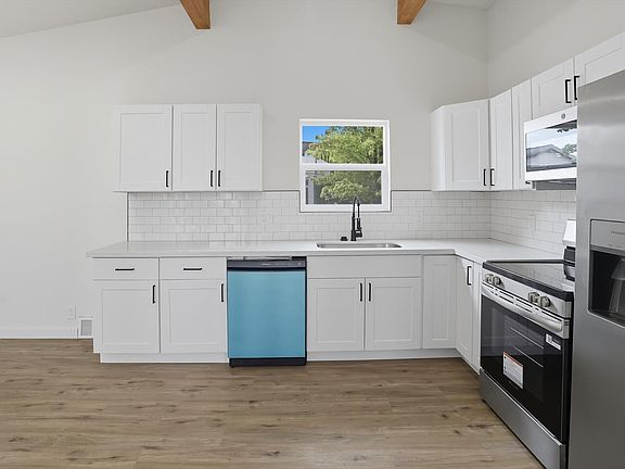 This beautifully updated home has been completely transformed with top-quality finishes throughout. From the brand-new flooring to upgraded electrical and plumbing, no detail has been overlooked. The stylish new exterior pairs perfectly with the modern, open-concept interior featuring neutral tones that suit any dcor. The kitchen is a standout with its white shaker cabinets, quartz countertops, and stainless steel appliances-ideal for hosting and everyday living. The spacious primary suite offers two closets and opens onto a private Trex balcony, creating a relaxing personal retreat. Additional features include a newly built deck overlooking a professionally landscaped yard, complete with an automated drip and sprinkler system. You'll also appreciate the new garage door opener, water heater, and a recently replaced roof for added peace of mind. Located in a quiet, well-established neighborhood with easy access to schools, shopping, and major commuter routes-this home truly has it all!