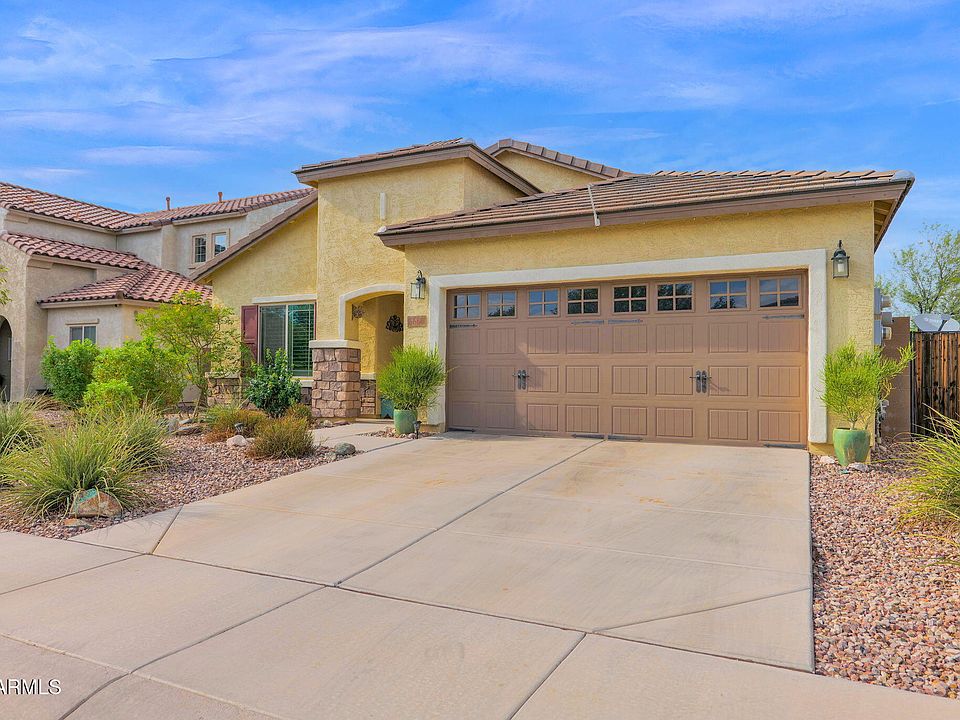 Don't miss looking at this wonderful upgrade home in the Anthem Merrill Ranch community. Spacious open floor-plan with laminate wood flooring through out the home. Upgrade kitchen with white GE Cafe appliances, Granite Countertops and spacious Island with bar-stool seating. French Glass panel doors open up to a Den with custom wood bookshelves. 21/2 Car Garage with option for 4th Bedroom. Enjoy your evenings out in your private covered patio and mature backyard. Take a short trip over to the Parkside Community Center and Park, its perfect for today's busy families, with loads of incredible amenities. (See Documents for Details)