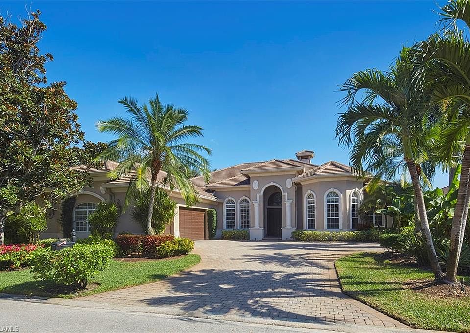 Offered for the first time since custom built, this 4BR + Den lakefront property is located on a beautifully landscaped oversize corner lot. Great curb appeal with newer flat tile roof, on a quiet cul-de-sac in the estates section of Hammock Isles in The Vineyards. The spacious floor plan features volume and tray ceilings, crown moldings, two fireplaces, pocketing sliding doors, plantation shutters, 8ft. interior doors and many other upgrades throughout. The Primary BR offers a fireplace with lanai and pool access through either a set of French doors or from His bathroom with a convenient shower. Her huge bathroom has both tub and shower, and each bathroom has a customized walk-in closet. Two additional BRS with a Jack & Jill shared bathroom between with dual sinks, plus an additional private, expanded ensuite BR also with lanai and pool access. The den has custom shelving and a large bay window with convenient access to a powder room. The over-sized paver screened lanai has covered and sunny areas for lounging, a beautiful outdoor kitchen and a saltwater heated pool with a spa and fountain. The large 3-car garage measures 24’ x 36’ has a window, service door and double wide storage closet. This is a great opportunity to make this beautiful custom home your own!