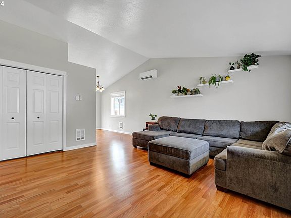 Come home to this adorable updated 2 bedroom, 2 bath, 1008 sq. ft. spacious floorplan. Built in 2000, this home offers ample storage, walk in closets, indoor laundry, and a large living room with an inviting vaulted ceiling as you enter. Entertain year around under the covered back patio, enjoy smore's around the fire pit, and Summer gardening in the garden area. Need storage? don't forget about the tool shed and RV/Boat parking. Updates include trim package, fixtures, 2 zone ductless heating/cooling systems, kitchen appliances, and brand new interior paint. 2 car garage was converted to be used as a bonus flex space. Seller is willing to negotiate wall removal if desired. All appliances, living room display shelves, washer/dryer, and garage fridge are included in sale.