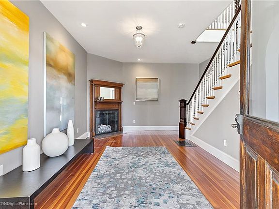 New renovation (2020) of the Sarah J Eddy House Condominiums comprised of three condominiums that have peeks of the Mt. Hope Bridge and Narragansett Bay. This spacious second floor residence offers open living areas with 8.5-foot ceilings and two ensuite master bedrooms plus powder room. Both primary and secondary master suites offer walk-in closets and gas fireplaces. The large eat-in kitchen includes Calacatta Quartz countertops, tile and backsplash, chef grade stainless appliances and built-ins. The dining room with a tray ceiling opens to large deck. The open living room has many updates and original architectural details. The grounds include a patio with grill area and firepit. Two assigned parking plus guest spaces. Great location with easy access to The Aquidneck Club, Bristol and Route 24 with Boston an hour away. Twenty minutes to Newport. Working capital fee of $950 (two months HOA fee) is due at closing.