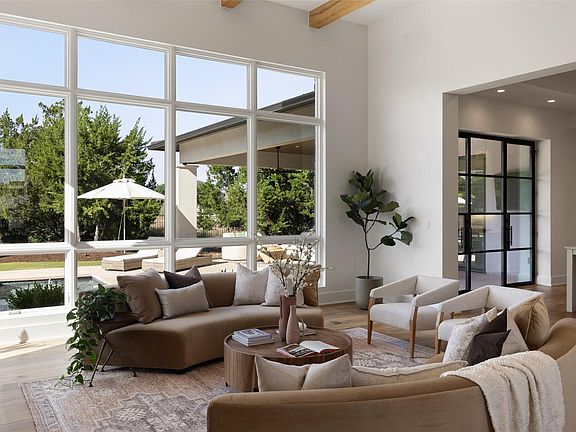 Welcome to 567 Delayne Drive, the premier estate at The Reserve. This masterpiece in design by Heyl Homes, includes $210k in upgrades to the original plan. Poised at end the drive, the home sprawls across the largest available lot. The expanded cobblestone drive brings you to the front of the home & an expansive 3-car garage. A tasteful mixture of stone masonry, stucco & aged wood exterior gives a modern, yet sophisticated feel. A custom steel & glass entry draws you into a foyer with spectacular view of the pool & landscaped back yard. To the right, soaring ceilings straddled by wood beams create a grand living space lined with walls of windows & stone fireplace. The dining room sits at the front of the home & opens to the living. A walk-through butler’s pantry & bar offers a side entrance towards the kitchen. The kitchen is undoubtedly a chef’s dream with large quartzite island, 48” Wolf range & built-in Sub-Zero refrigerator. A walk-in pantry and powder room sit behind the kitchen & a great den on the left. This open media space views the outdoor entertainment space & features a whole-home smart entertainment & AV system. To the left of the foyer is the home office with custom cabinetry & expansive windows overlooking the front lawn. Down the hall you will find two large bedrooms each complete with a walk-in closet & en-suite bath. Towards the rear of the home you enter the owner’s retreat. A private hallway leads to a sprawling bath with curb-less shower, soaking tub & his & hers walk-in closets. The light-filled bedroom offers a view of the pool & yard, while the custom smart window treatments allow privacy in an instant. This home wraps around an exquisite pool & spa. The covered kitchen & lounge space give ample room for outdoor dining & living, making this home live like a true retreat. With a short drive to central Austin as well as the Hill Country’s best restaurants, wineries & hotspots, make sure reach out for all the details on this dream estate.
