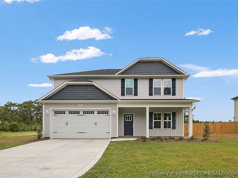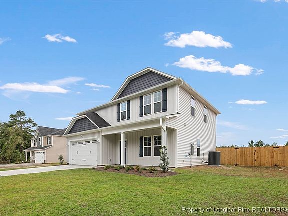 This stunning 4-bedroom, 2 1/2 bath home features an open floor plan with all bedrooms located on the upper level. The main floor includes LVP flooring throughout, connecting the spacious living room to the kitchen, which includes all stainless steel appliances, granite countertops, a kitchen island, and a subway tile backsplash. The living room features a beautiful fireplace with a stone surround. Additional highlights include a formal dining/office flex room, a 2-car garage, and a covered back porch with a privacy fence, perfect for entertaining. Set on 0.46 acres, the home’s neutral color palette complements any decor style. Less than 1/2 mile to Skydive Paraclete XP. Conveniently located near Ft. Liberty, Southern Pines, and Fayetteville. Don’t miss out on this one! Seller concessions offered!