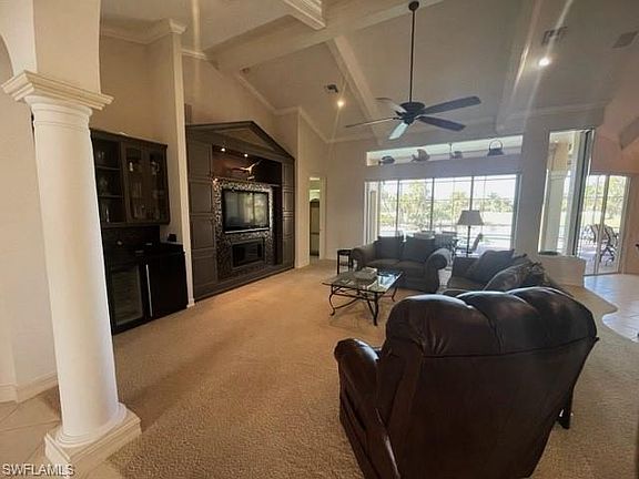 - Bar, Built-In Cabinets, Cathedral Ceiling(s), Closet Cabinets, Fireplace, Foyer, French Doors, Laundry Tub, Multi Phone Lines, Smoke Detectors, Wired for Sound, Volume Ceiling, Walk-In Closet(s), Wet Bar, Window Coverings, Den - Study, Laundry in Residence, Screened Lanai/Porch