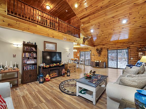 Rustic beamsTimeless craftsmanshipThree bedroomsWarm wood tonesInviting log cabin retreat