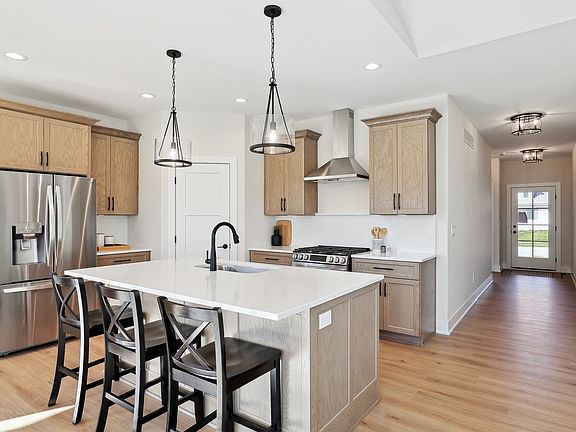 Step into the sought-after KRM Custom Homes Simply Silver Amber Plan, nestled in the prestigious Della Vita neighborhood. This plan seamlessly combines practicality for everyday living with the luxury of custom home living. The main floor features 3 bedrooms, ideal for a home office, a kitchen with ample counter space, a well-appointed walk-in pantry, elegant quartz countertops, and all appliances included. Enjoy the vaulted great room with an electric fireplace, 3 large fixed windows for natural light, and a triple-pane slider leading to a charming covered deck. The primary suite boasts a lavish bathroom with a tiled shower, a walk-in closet that connects to the laundry room, a spacious drop zone, and an additional full bathroom. The lower level impresses with a vast family room including a bar, 2 extra bedrooms, and a third bathroom. Other notable features include: Raised and elongated stools, Rounded drywall corners, Hardi siding, City water meter, Passive radon mitigation, BIBS system, Form-A-Drain system, Advantek subflooring, and Zip system exterior. This home exemplifies top-notch craftsmanship throughout. Take advantage of the opportunity to save on closing costs or origination fees by using the builder's preferred lender.