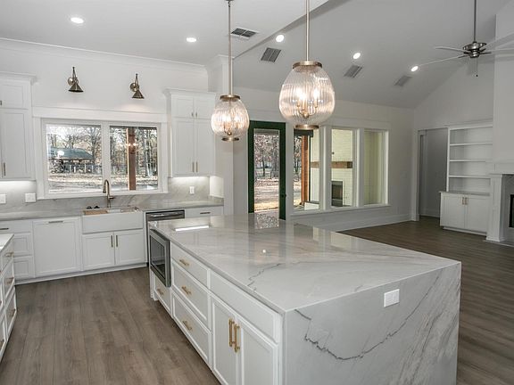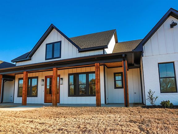 New construction modern farmhouse ready for new owner/occupants! 4 bedroom, 3.5 bath, and an office sitting on nearly 2.5 acres. House is 2841 square foot heated and cooled, and 5264 square foot under roof! Primary suite has a cedar beam and cathedral ceiling and the bathroom includes Panda marble countertops, a stand alone tub, private lavatory, and oversized closet. Bedroom 2 also has an oversized closet and attached bathroom with emerald green tile and hints of green in the granite vanity countertop. Bedrooms 3 and 4 are connected by a jack and jill bathroom with light blue accents. Oversized kitchen island and open concept for entertaining, designated dining area, custom cabinets and built-in shelving compliments the gas log fireplace in the center of the open concept design. Many extras include butlers pantry, large laundry room, 3 car garage, tankless water heater, covered back porch with cedar ceiling and gas start fireplace, 3 car attached garage, gold fixtures and hardware, trayed ceilings, and 683 square foot unfinished upstairs that would make a great bonus room or 5th bedroom. Fiber optics internet available here, and location is perfect for any commute, only 4 miles from I-20.