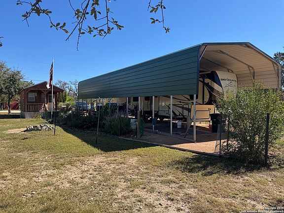 Very nice lot in River Bend. Has septic, storage room and cabin that was used for laundry and storage that has water, electric and window unit. Nice yard! 24x60 RV cover. This is a nice little piece of Bandera heaven! RV can be bought separately and is not included in this sales price.