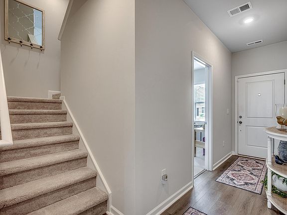 Lovely community of Cooper's Bluff offers this 3-bedroom and 3 full bath townhome with a garage. It's nicely laid out with a downstairs primary suite with a low-rise walk-in shower, an added shower slider, and a large closet. Another bedroom downstairs works great as a TV room or a nice home office. There's a 3rd bedroom suite upstairs, which also has a large storage room. Luxury vinyl wood-style floors dress the downstairs, and bedrooms are carpeted. There's a roomy backyard area with a privacy fence between units, and there is the option to fully fence the back area space. A nice-sized patio is on the back of the home as well. Low HOAs offer lawn care, a community pool, a community garden, and a playground area. This location is convenient to area schools, dining, shopping, and close to the Airport and hospitals. Hwy 544, 707, and 31 are very close in proximity to Cooper's Bluff